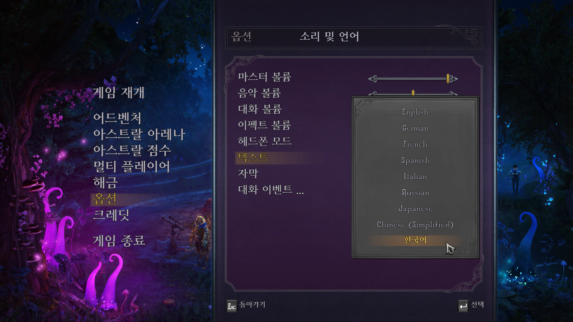그 후 옵션에서 'Korean'을 설정해주시면 됩니다.